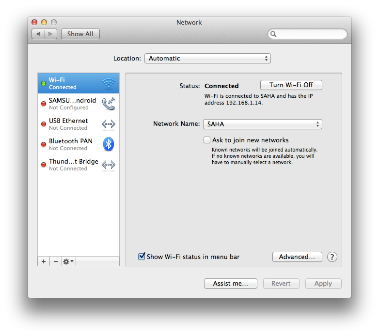 We need to configure the mobile device to use our computer’s IP address as the proxy. On a Mac, we can find the IP address my opening up System Preferences > Network: